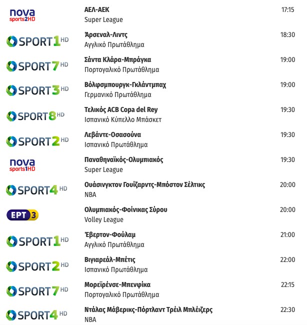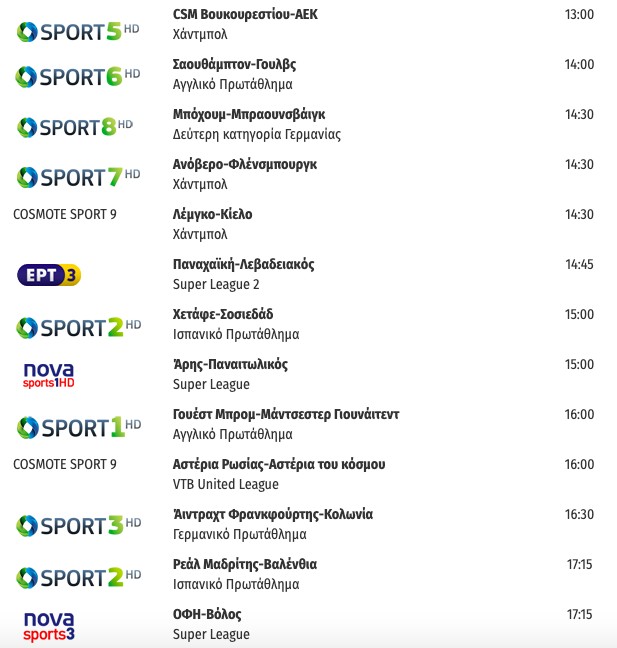 Αναλυτικά το πρόγραμμα των τηλεοπτικών μεταδόσεων: