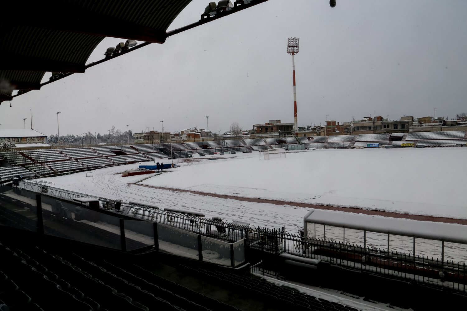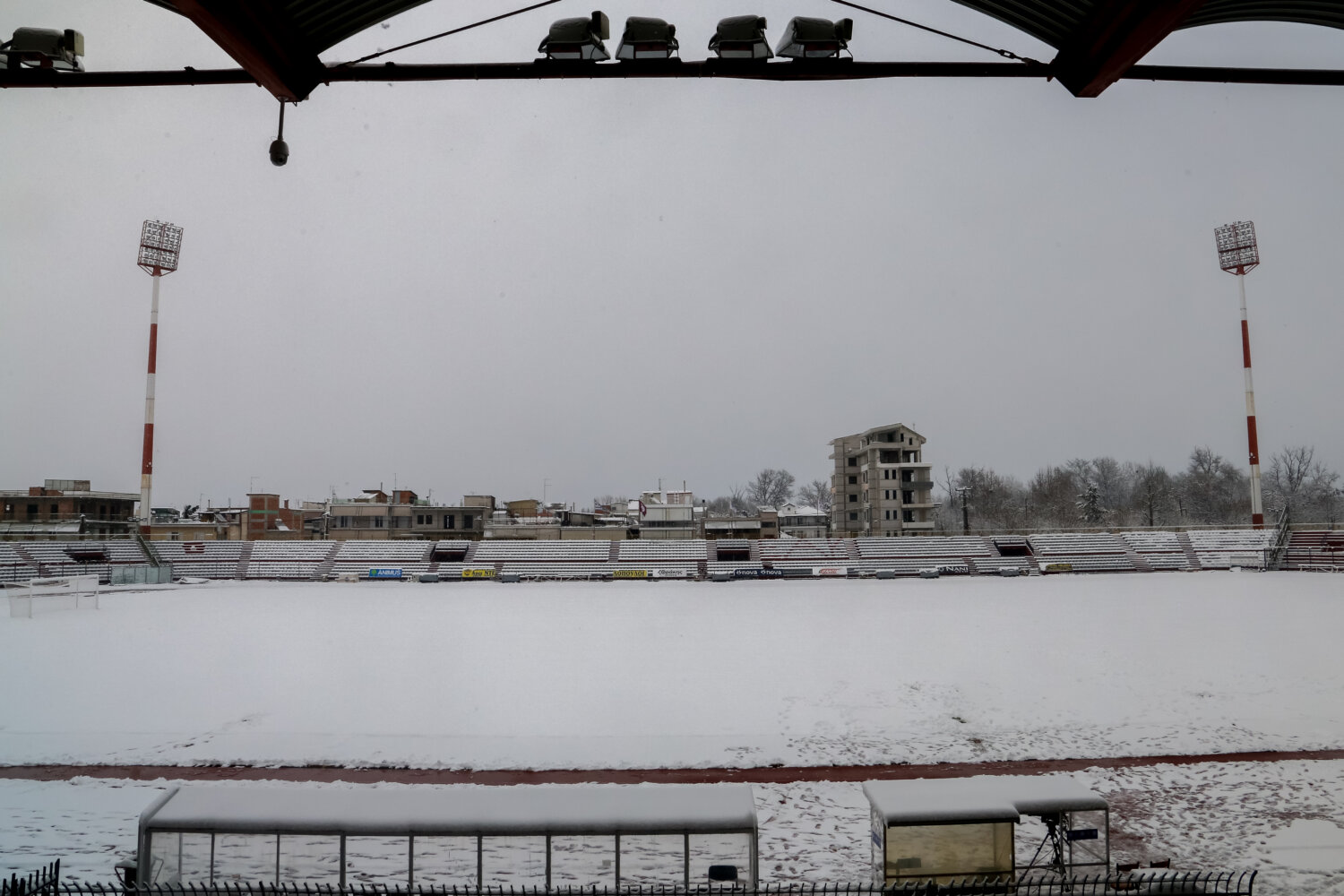 Οι άσχημες καιρικές συνθήκες που επικρατούσαν από χθες έστρωσαν για τα καλά το χιόνι στο γήπεδο και ήταν αδύνατο να έρθει σε κατάσταση για αγώνα σήμερα.