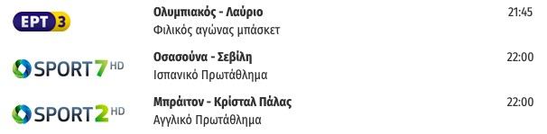 Αναλυτικά οι αθλητικές τηλεοπτικές μεταδόσεις της ημέρας: