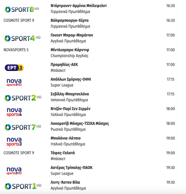 Αναλυτικά οι αθλητικές τηλεοπτικές μεταδόσεις: