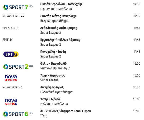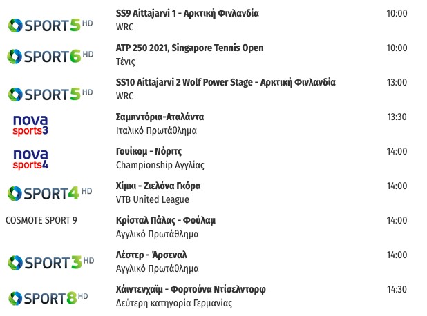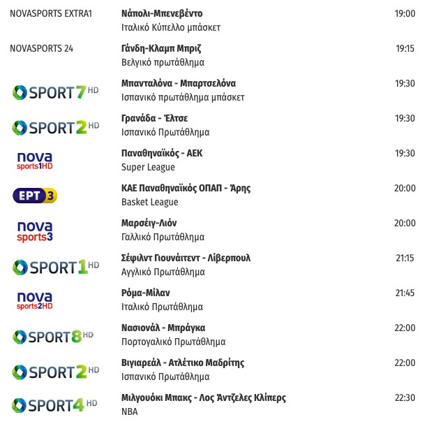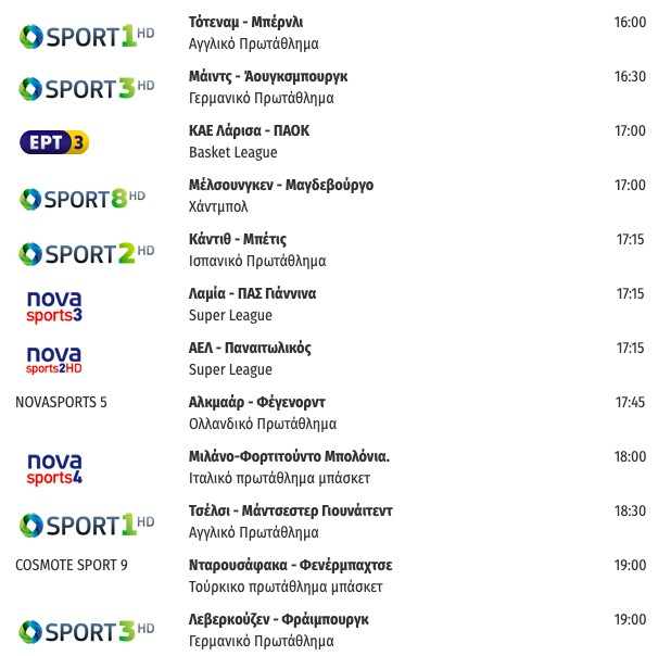 Αναλυτικά το σημερινό αθλητικό τηλεοπτικό πρόγραμμα: