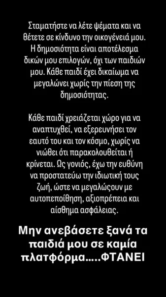 Μην ανεβάσετε ξανά τα παιδιά μου σε καμία πλατφόρμα… ΦΤΑΝΕΙ».
