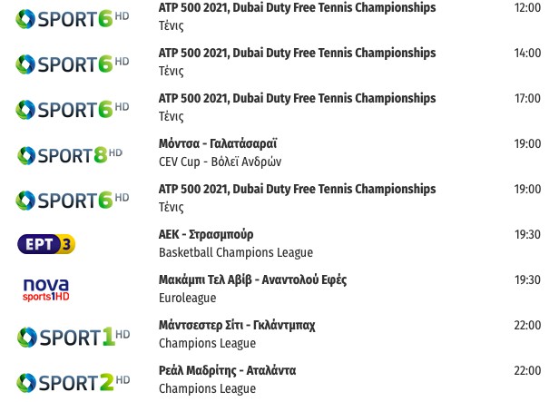 Αναλυτικά το αθλητικό τηλεοπτικό πρόγραμμα: