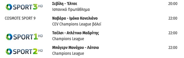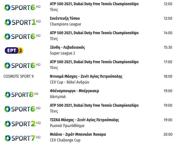 Αναλυτικά το τηλεοπτικό αθλητικό πρόγραμμα: