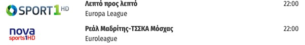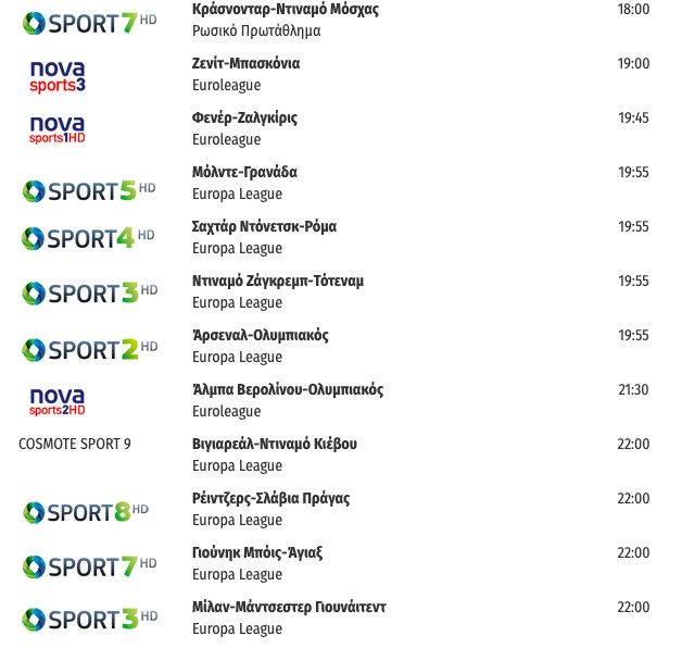 Αναλυτικά το σημερινό αθλητικό πρόγραμμα: