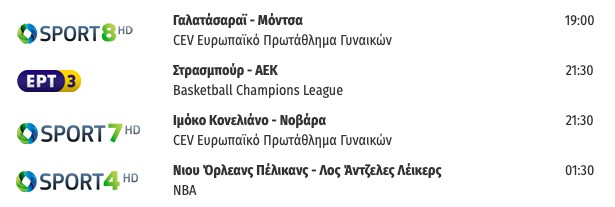 Το πρόγραμμα των αθλητικών μεταδόσεων – Πού θα δούμε τη μάχη της ΑΕΚ σήμερα