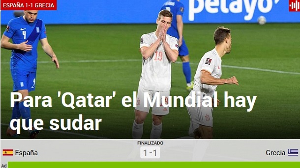 Mundo Deportivo: «Η Ισπανία αρχίζει τον δρόμο προς το Κατάρ με ισοπαλία κόντρα στην Ελλάδα. Η Ισπανία δεν ήταν ο τυφώνας που διέλυσε τους Γερμανούς και η Ελλάδα δεν έδωσε τις ίδιες ευκολίες».