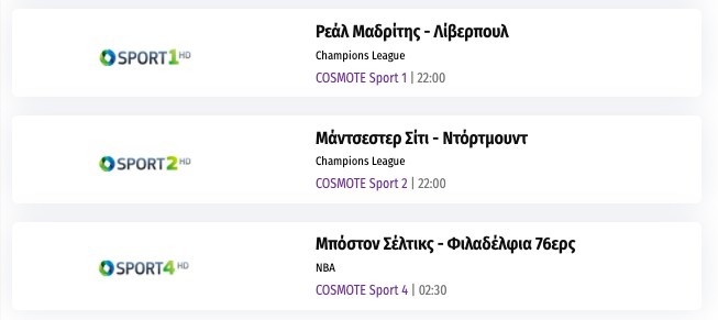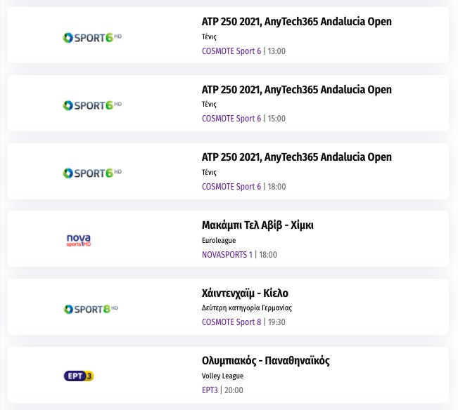 Αναλυτικά το αθλητικό πρόγραμμα της ημέρας: