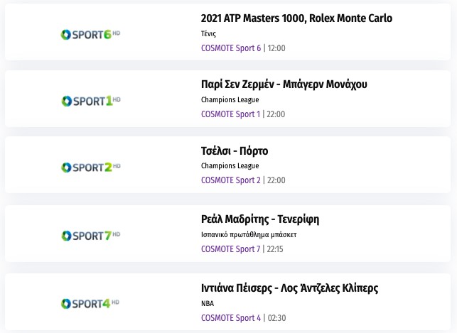 Το σημερινό τηλεοπτικό αθλητικό πρόγραμμα:
