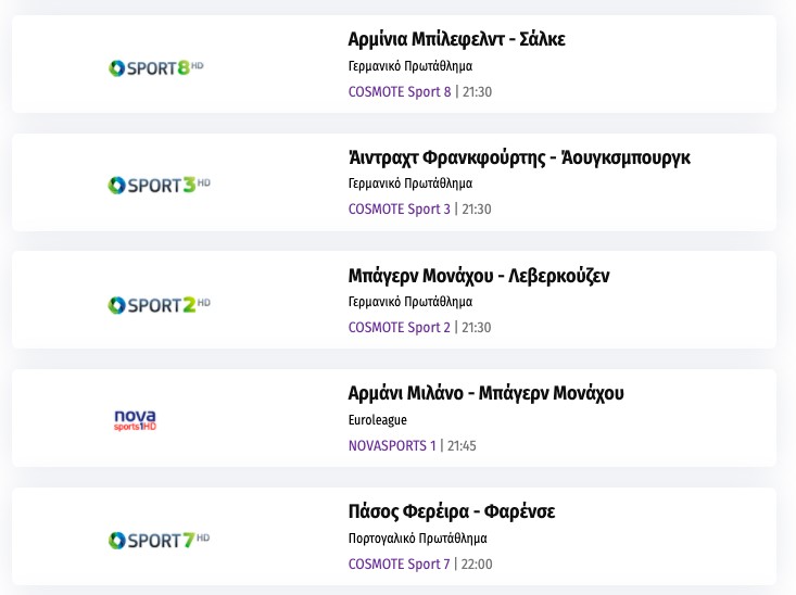 Πολύ μπάσκετ, αλλά και ξένα πρωταθλήματα ποδοσφαίρου στο σημερινό τηλεοπτικό αθλητικό πρόγραμμα: