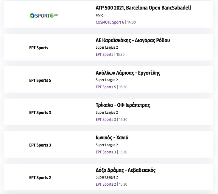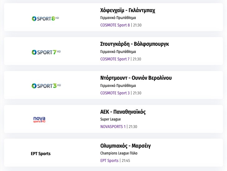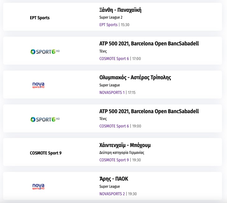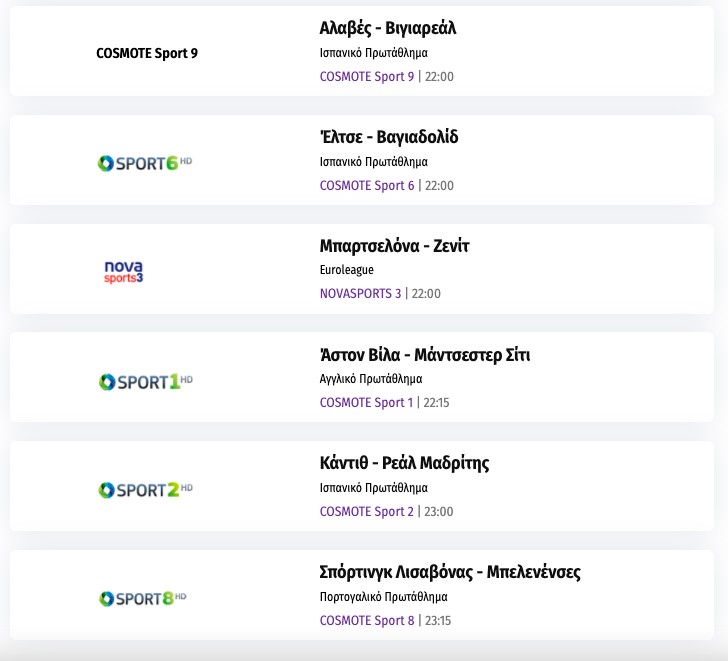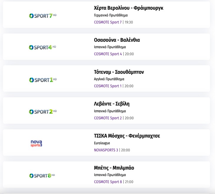 Αναλυτικά οι αθλητικές μεταδόσεις της ημέρας: