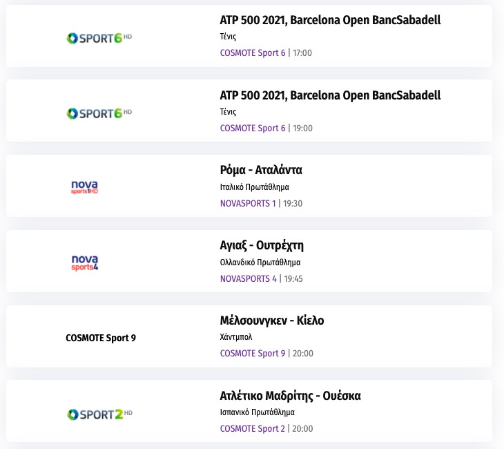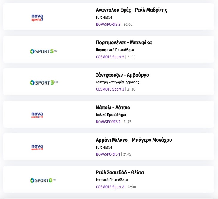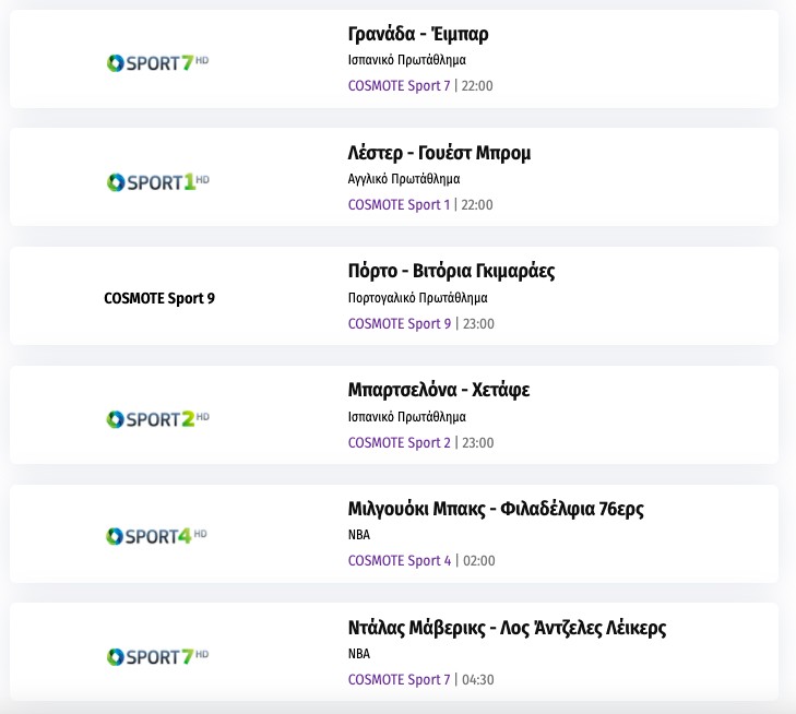 Το αθλητικό τηλεοπτικό πρόγραμμα της ημέρας: