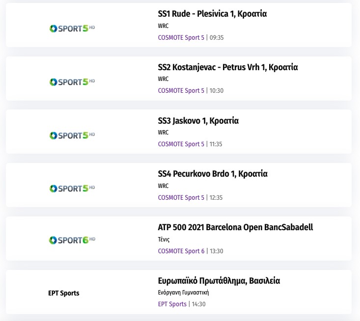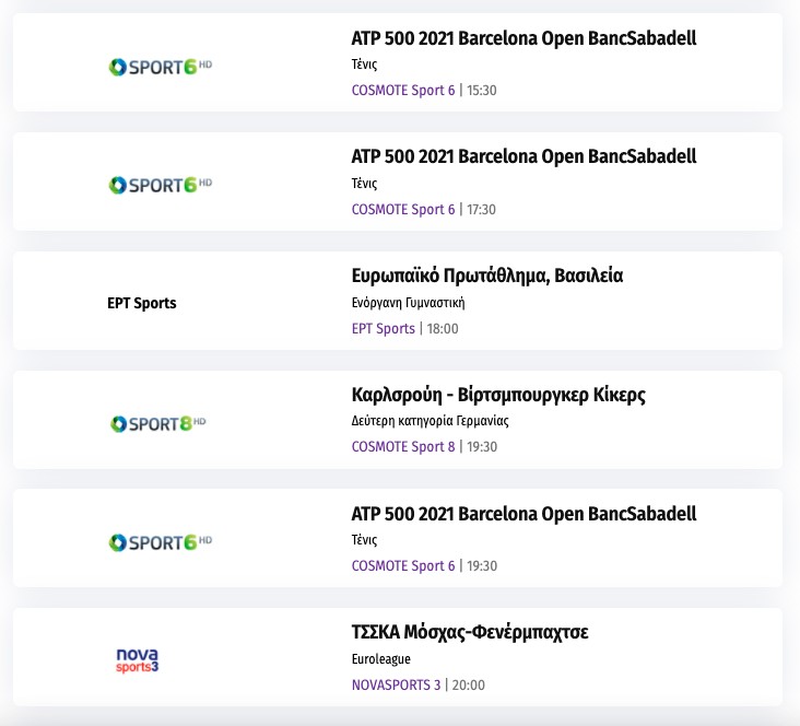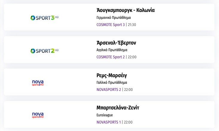 Αναλυτικά το σημερινό τηλεοπτικό αθλητικό πρόγραμμα: