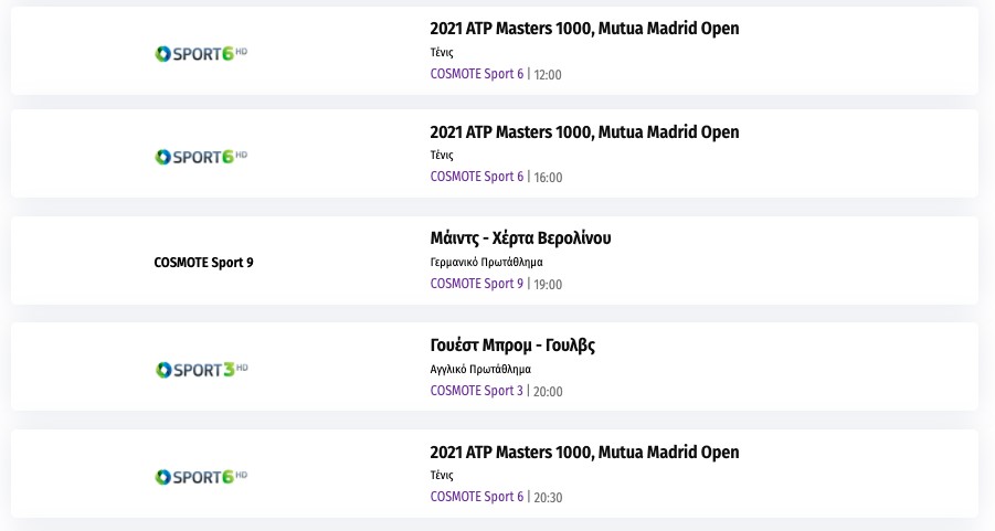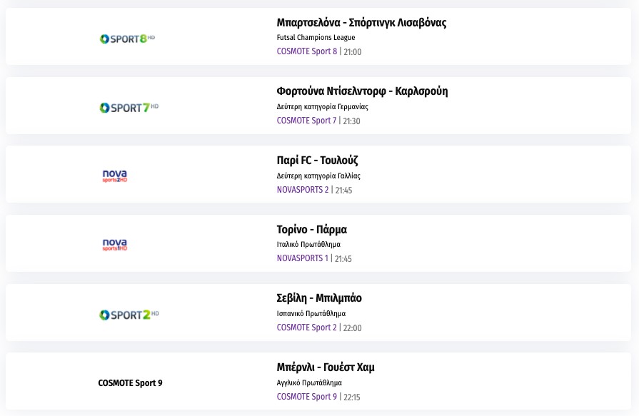 Αναλυτικά το σημερινό τηλεοπτικό αθλητικό πρόγραμμα: