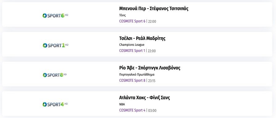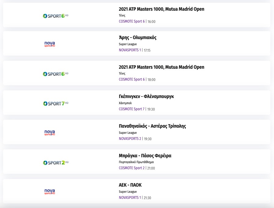 Αναλυτικά το σημερινό αθλητικό τηλεοπτικό πρόγραμμα: