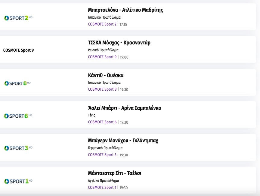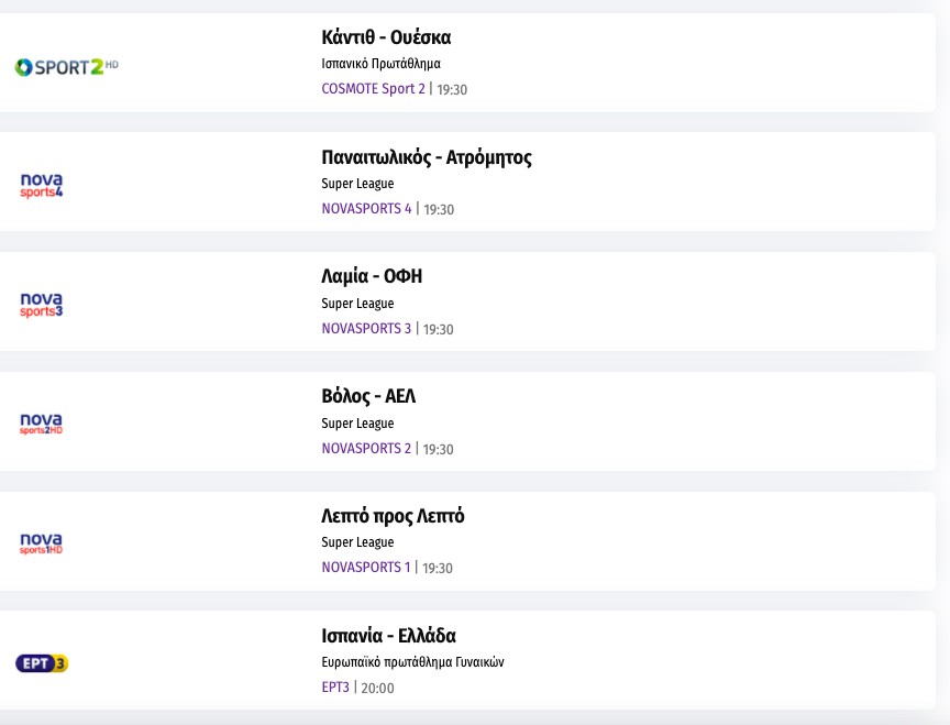 Αθλητικές μεταδόσεις για όλα τα γούστα σήμερα! Αναλυτικά