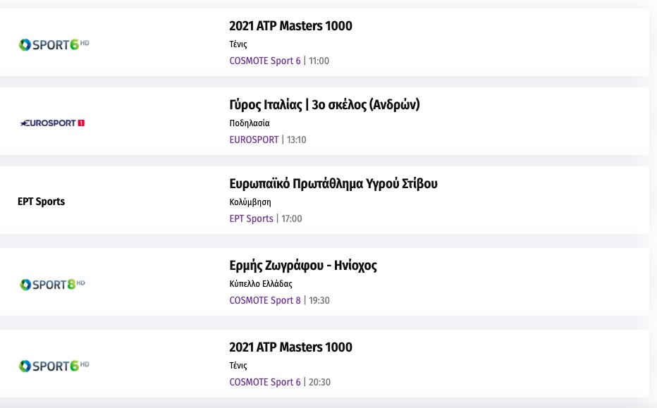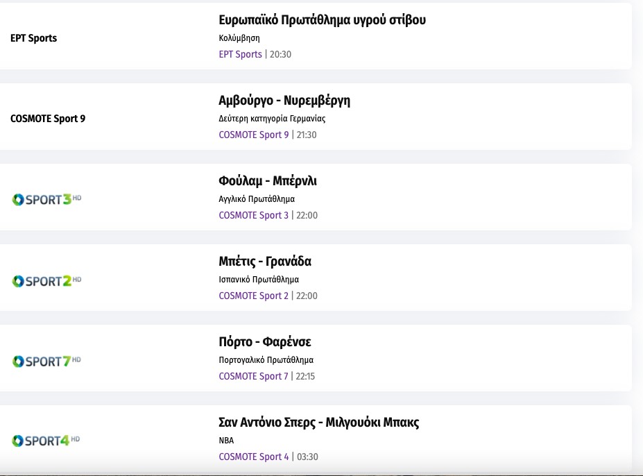 Αναλυτικά το σημερινό τηλεοπτικό αθλητικό πρόγραμμα: