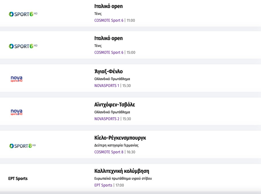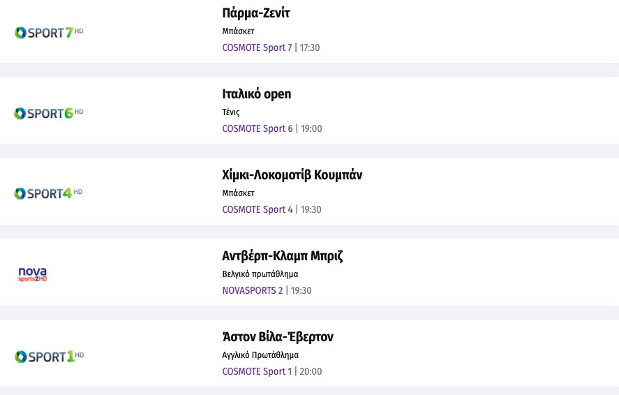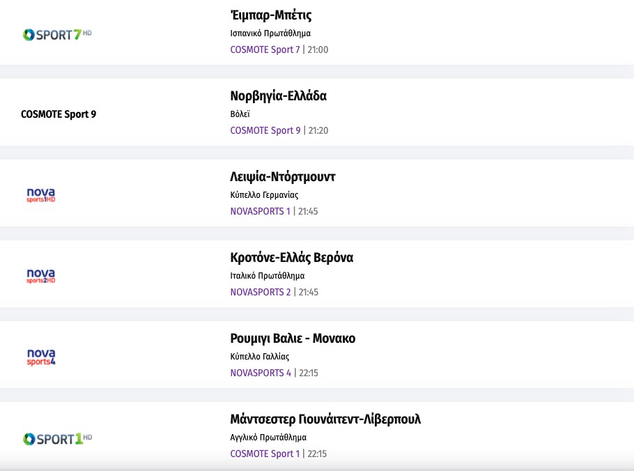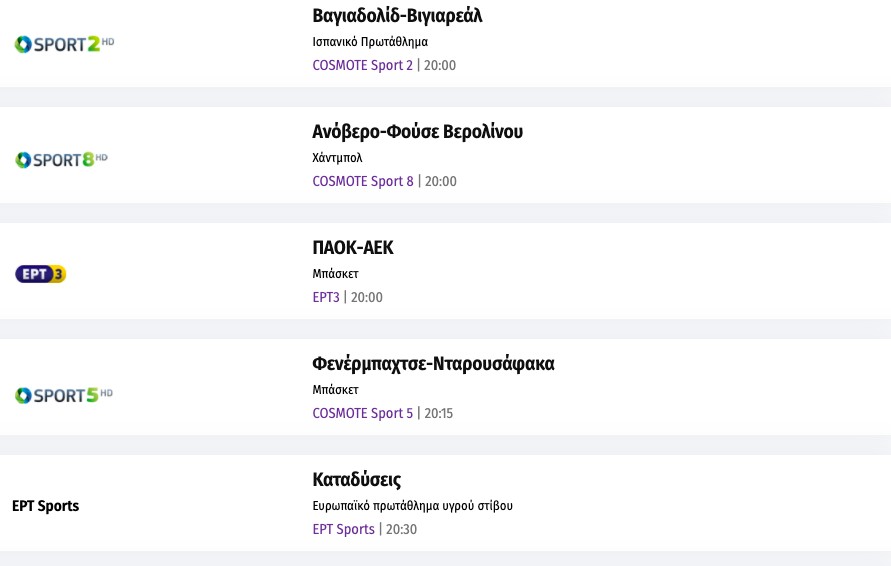Το σημερινό τηλεοπτικό αθλητικό πρόγραμμα