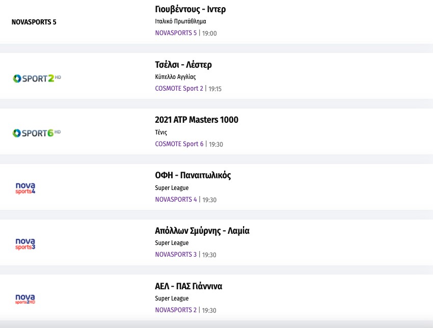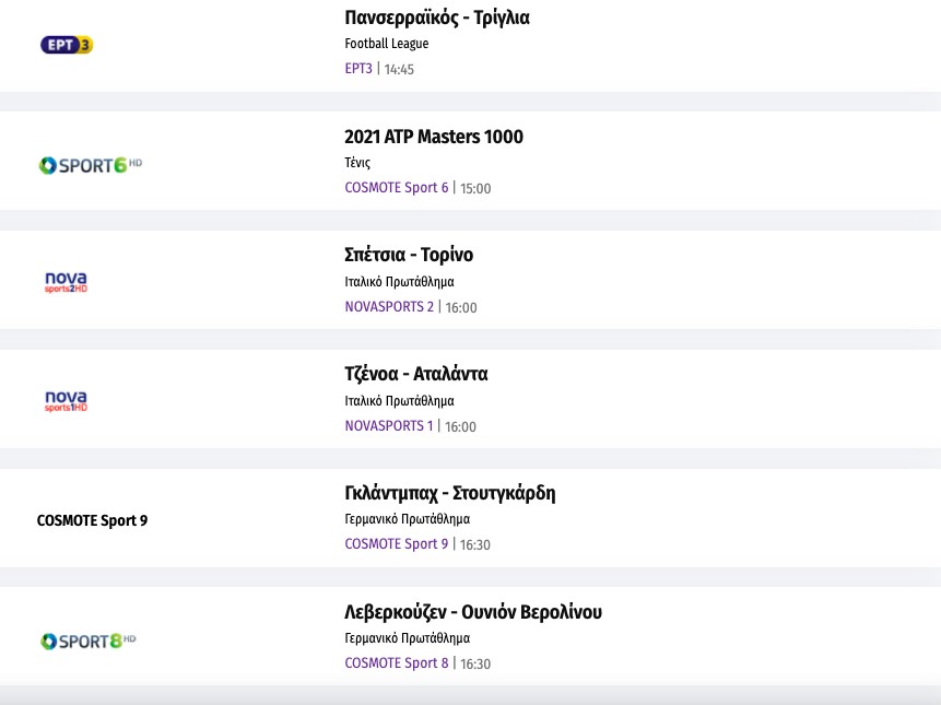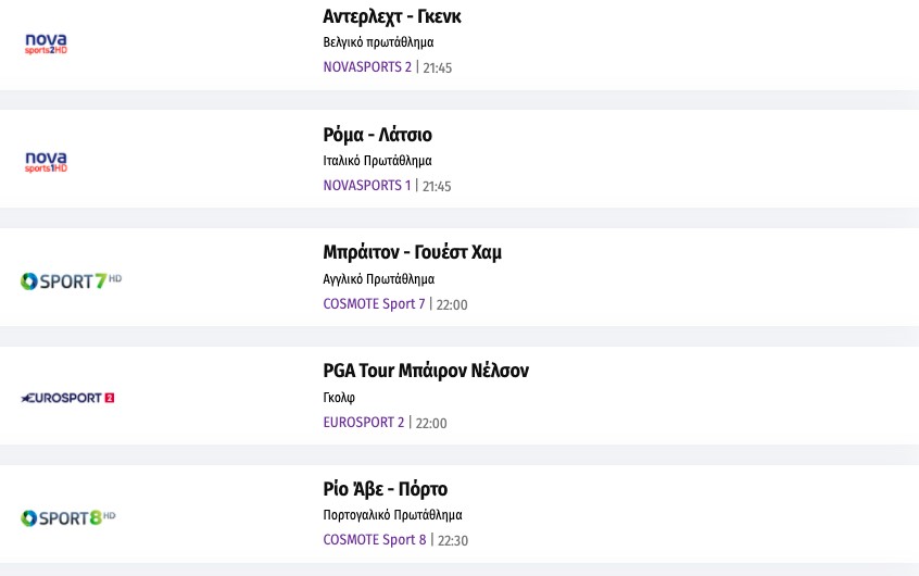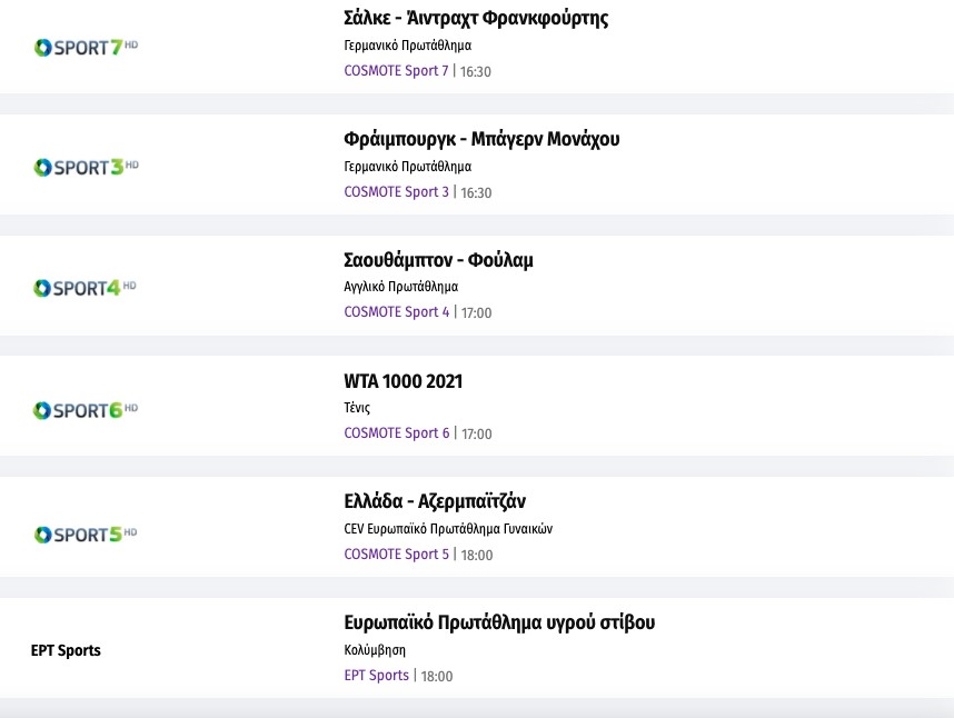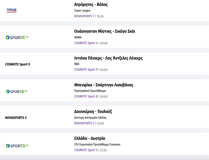Αναλυτικά το σημερινό τηλεοπτικό αθλητικό πρόγραμμα:
