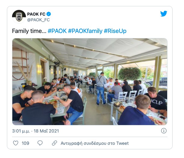 Η ΠΑΕ ΠΑΟΚ ανήρτησε φωτογραφία από το γεύμα με την λεζάντα «Η ώρα της οικογένειας».