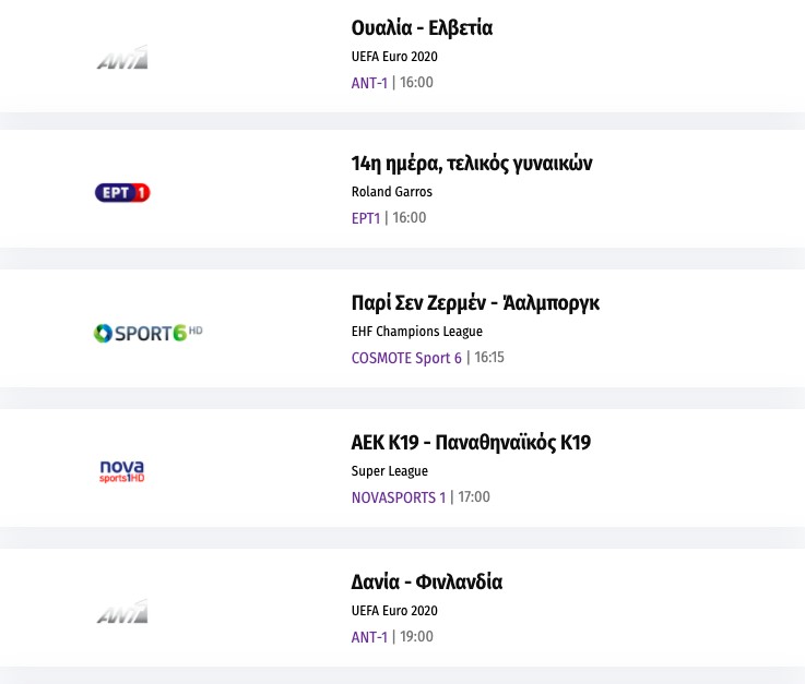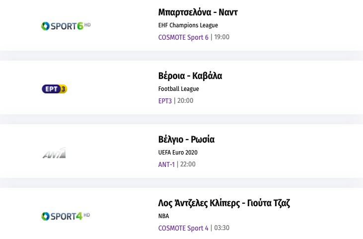 Αναλυτικά το σημερινό αθλητικό τηλεοπτικό πρόγραμμα: