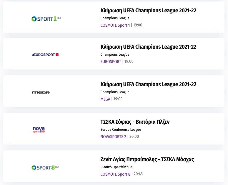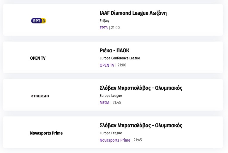 Αναλυτικά το σημερινό αθλητικό τηλεοπτικό πρόγραμμα: