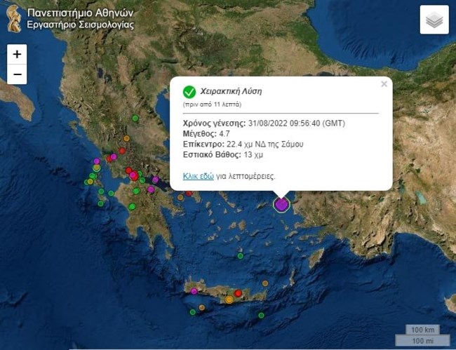 Δύο σεισμοί 5,2 και 4,7 Ρίχτερ στη Σάμο ταρακούνησαν το Αιγαίο
