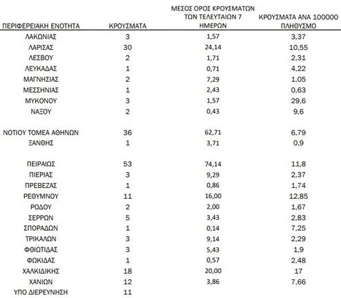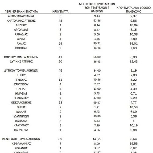 Στο «κόκκινο» παραμένει η Αττική – Η Αχαΐα ξεπέρασε τη Θεσσαλονίκη – Η γεωγραφική κατανομή