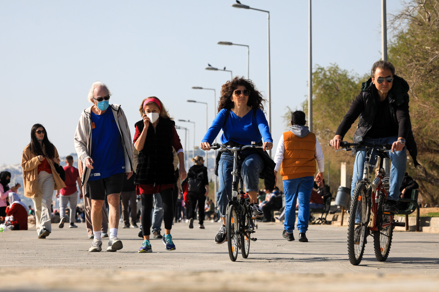 Με μάσκες οι περισσότεροι, αλλά χωρίς να τηρούν σε πολλές περιπτώσεις τις αποστάσεις εκμεταλλεύθηκαν τον ήλιο και βγήκαν μια βόλτα στην παραλιακή.