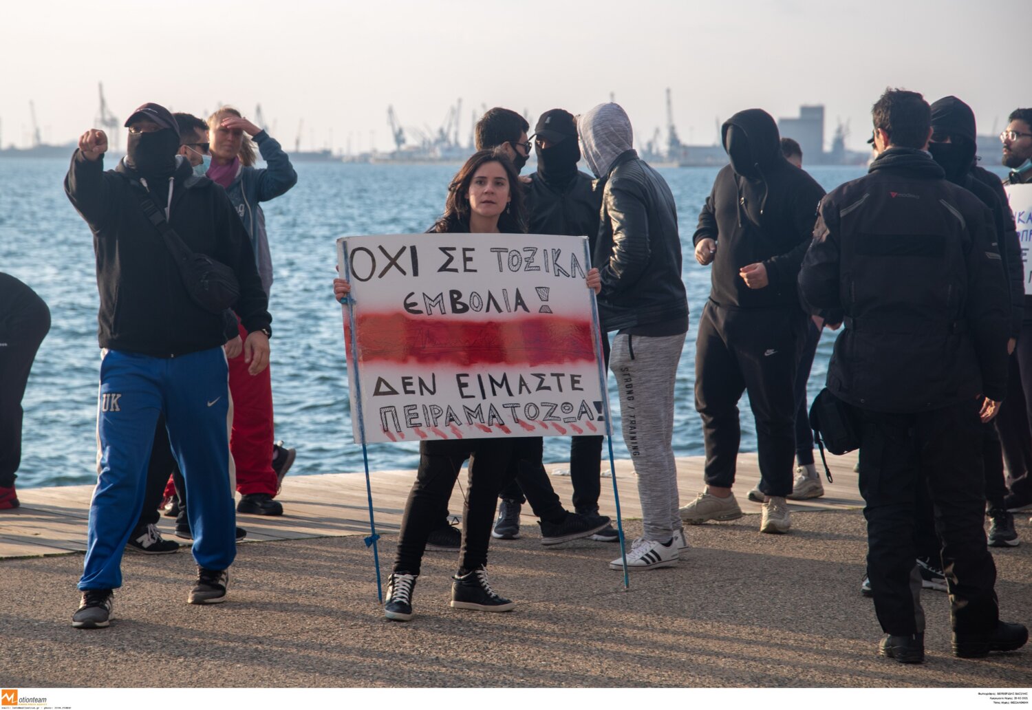 Συγκέντρωση πραγματοποιήθηκε το απόγευμα στη νέα παραλία στη Θεσσαλονίκη σε ένδειξη διαμαρτυρίας για τα μέτρα κατά της πανδημίας.