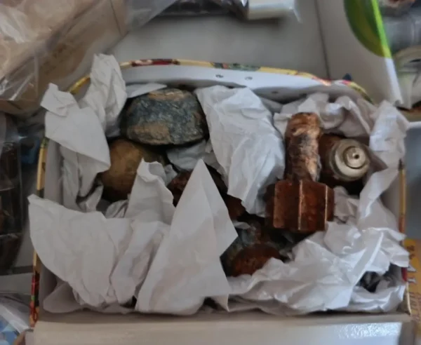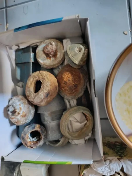 • διάφορα οξειδωμένα εξαρτήματα όπλων του Β΄ Παγκοσμίου Πολέμου,
