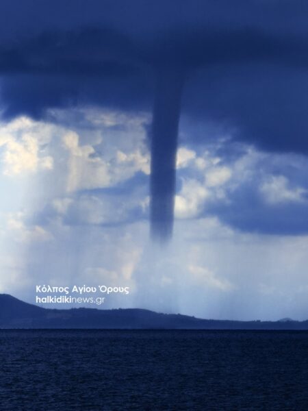 Χαλκιδική: Εντυπωσιακός υδροστρόβιλος – Μια γιγάντια στήλη σα να ενώνει ουρανό και θάλασσα (βίντεο)