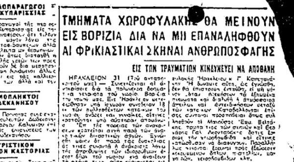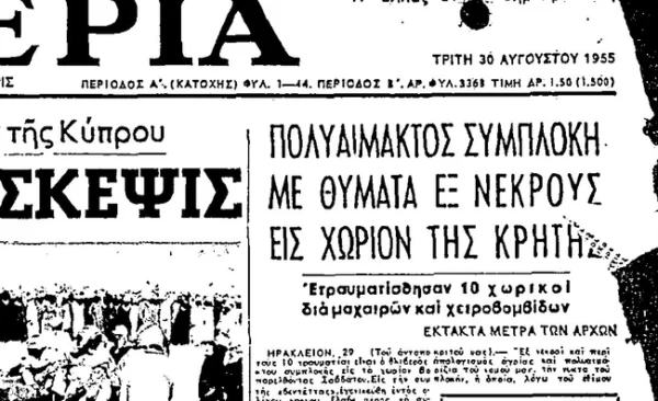 Ήταν 27 Αυγούστου 1955, στους πρόποδες του Ψηλορείτη, όπου έρεαν άφθονο το κρασί και η τσικουδιά. Η Κρητική λύρα ηχούσε και οι μαντινάδες συμπλήρωναν τη γιορτή του Αγίου Φανουρίου. Το γλέντι όμως μετατράπηκε σε τραγωδία και η χαρά σε δυστυχία.