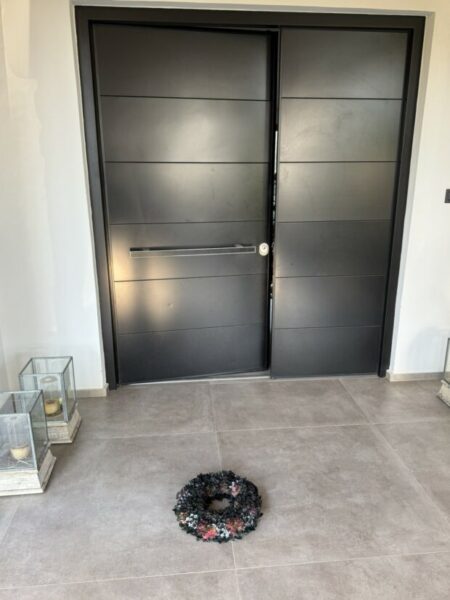 Οι σφαίρες χτύπησαν την μπαλκονόπορτα σαλονιού και την μπαλκονόπορτα κουζίνας ενώ οι δράστες άφησαν ένα μαύρο στεφάνι στην κεντρική είσοδο, προφανώς προειδοποιητικό μήνυμα ακραίας απειλής.