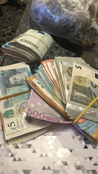 • το χρηματικό ποσό των -38.564- ευρώ, -1.100- λίρες Αγγλίας, -13- δολάρια Αμερικής,