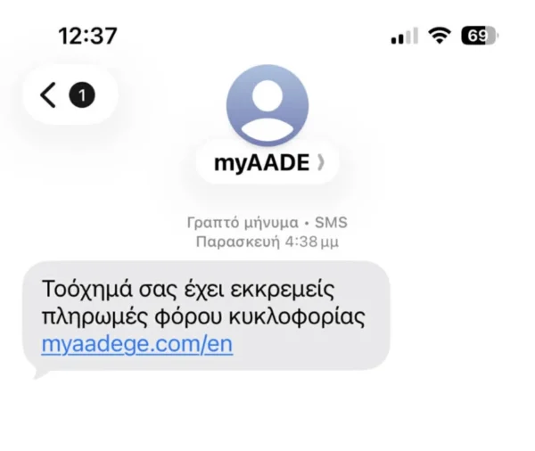 - Απατεώνες στέλνουν SMS ως «MYaade» ή «GOV» για φόρο κυκλοφορίας, τι να προσέξουν οι πολίτες