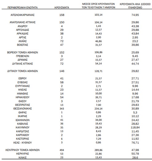 Αναλυτικά τα στοιχεία σε όλη τη χώρα: