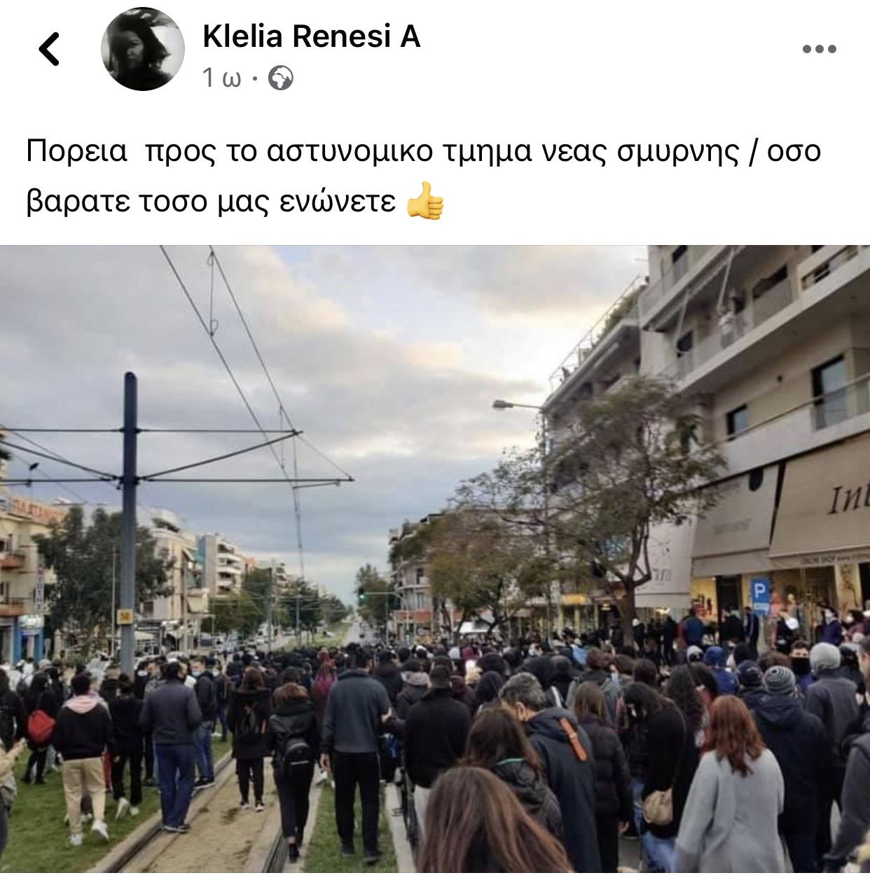 Με ανάρτηση της στο Facebook, η δημοφιλής ηθοποιός ενημέρωσε πως συμμετείχε στην πορεία στη Νέα Σμύρνη προς το αστυνομικό τμήμα της περιοχής