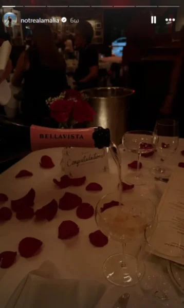 Αφού έκανε γνωστή την είδηση του γάμου της, δημοσιεύοντας ένα βίντεο από την τελετή στο Instagram, η Αμαλία Κωστοπούλου μοιράστηκε ένα ακόμα στιγμιότυπο. Σε αυτό φαίνεται ένα τραπέζι στρωμένο με ροδοπέταλα, ενώ σαμπάνια σερβίρεται στα ποτήρια.