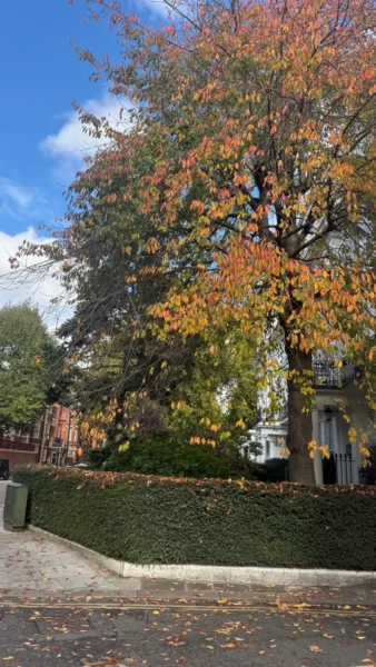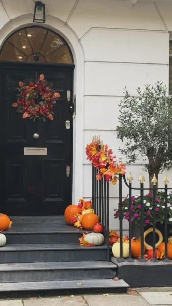 Σε μία από τις φωτογραφίες φαίνεται μια στολισμένη με κολοκύθες είσοδος σπιτιού , ενώ σε μια δεύτερη μας δείχνει έναν δρόμο γεμάτο δέντρα, αποτυπώνοντας την ομορφιά της εποχής .