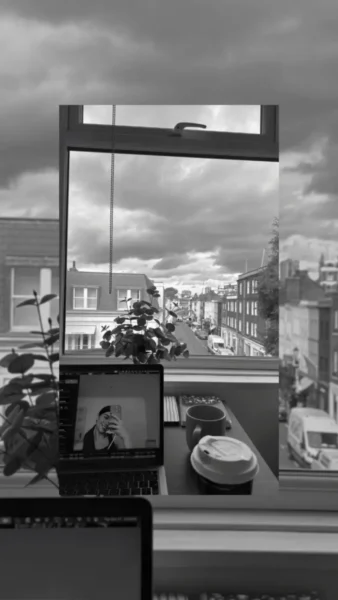 Σε μια άλλη ασπρόμαυρη φωτογραφία που δημοσίευσε, όπου φαίνεται η ίδια να ποζάρει μέσα από το παράθυρο του δωματίου της, με φόντο τα χαρακτηριστικά λονδρέζικα κτίρια και ένα φλιτζάνι καφέ στο γραφείο της.