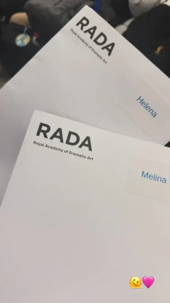 Η κόρη της Δέσποινας Βανδή και του Ντέμη Νικολαίδη το καλοκαίρι ολοκλήρωσε τις σπουδές της από το Royal Holloway University of London ωστόσο σε story που δημοσίευσε η πριν από μερικές ώρες, η Μελίνα Νικολαΐδη μας δείχνει μια φωτογραφία από τη RADA, τη δραματική σχολή Royal Academy of Dramatic Art (Βασιλική Ακαδημία Δραματικής Τέχνης) κρατώντας φάκελο με το όνομά της.