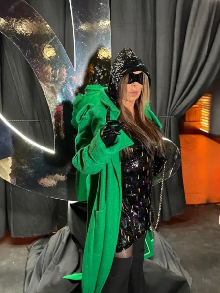 Η Άντζελα Δημητρίου τράβηξε όλα τα βλέμματα μοιράζοντας στους θαυμαστές της στο Instagram στιγμιότυπα από το εντυπωσιακό της outfit. Η τραγουδίστρια φόρεσε ένα μαύρο μίνι φόρεμα με κουκούλα, το οποίο συνδύασε με μπότες, πράσινο παλτό και statement μαύρα γυαλιά ηλίου, προσδίδοντας έναν edgy αλλά κομψό χαρακτήρα στο look της.