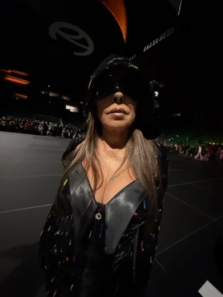 Η τραγουδίστρια εντυπωσίασε με το μαύρο μίνι φόρεμα, και τα ιδιαίτερα γυαλιά, επιβεβαιώνοντας την αγάπη της για τα τολμηρά και κομψά looks.