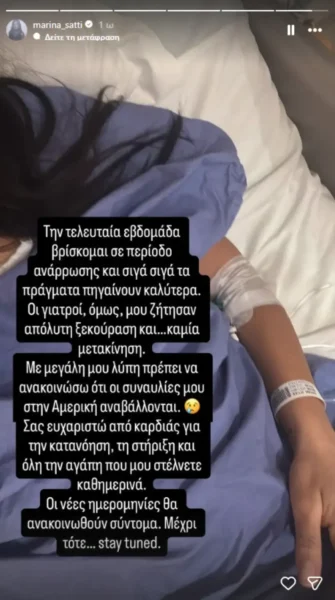 Μαρίνα Σάττι: Το μήνυμα και η φωτογραφία μέσα από το νοσοκομείο μετά την αναβολή της περιοδείας της
