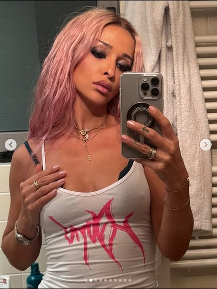 Μάλιστα σε μία από τις φωτογραφίες εμφανίζεται με τα πραγματικά της μαλλιά, αφήνοντας για λίγο τις περούκες που φοράει στους τελευταίους μήνες στις εμφανίσεις της.