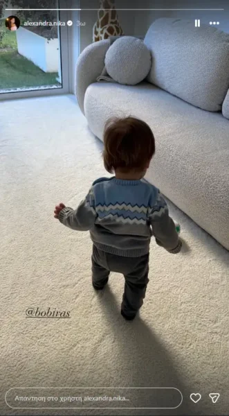 Αν και οι δύο γονείς κρατούν χαμηλό προφίλ και δεν εκθέτουν την προσωπική τους ζωή στα social media , η Αλεξάνδρα Νίκα , απόγευμα της Τετάρτης 14 Ιανουαρίου δημοσίευσε φωτογραφία με τον ενός έτους γιο της να κάνει τα πρώτα του βήματα γράφοντας μόνο «bobiras»: