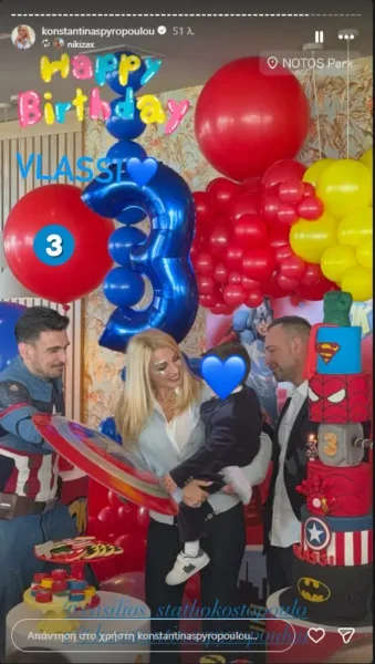 Η παρουσιάστρια, μέσα από τον λογαριασμό της στο instagram μοιράστηκε βίντεο και φωτογραφίες από το παιδικό πάρτι και την πανύψηλη τούρτα με τους αγαπημένους σούπερ ήρωες του γιου της.