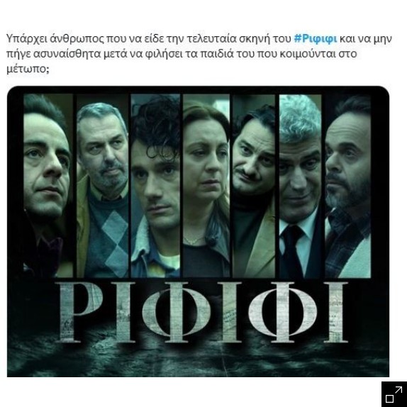 «Υπάρχει άνθρωπος που να είδε την τελευταία σκηνή του #Ριφιφι και να μην πήγε μετά να φιλήσει τα παιδιά του που κοιμούνται», παρατήρησε άλλος