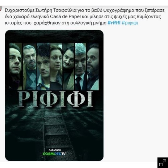 Άπειρο respect σε Τσαφούλια για αυτό το δημιούργημα #Ριφιφι pic.twitter.com/JftMudKFjb— Giorgos_Zahariou (@ZahariouGiorgos) January 20, 2026